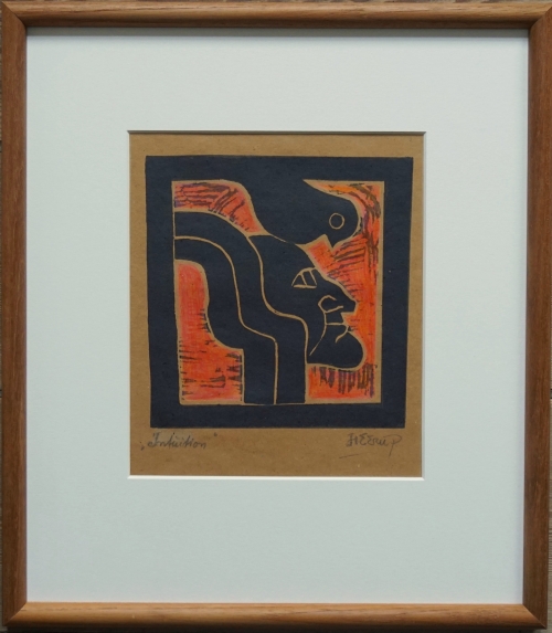 Henry Heerup - Linoleumssnit med oliekridt på brunt papir, 1943. Få eksemplarer