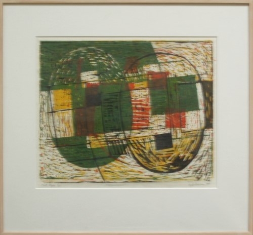 Otto Deleuran - Farvetræsnit på japanpapir, 1984