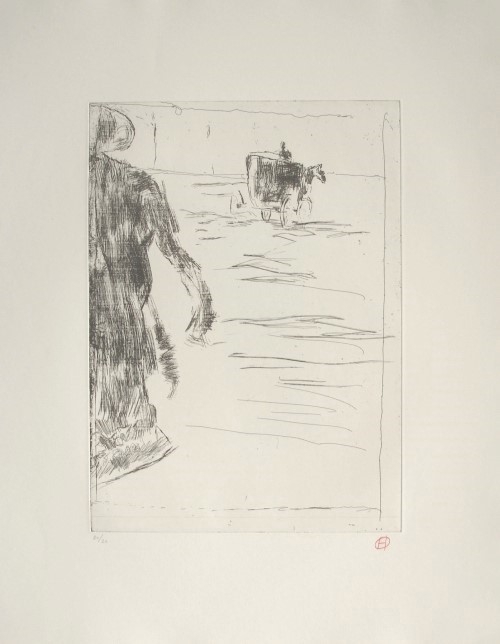 Preben Hornung - Komposition med hestevogn. Radering 1986, 20/20
