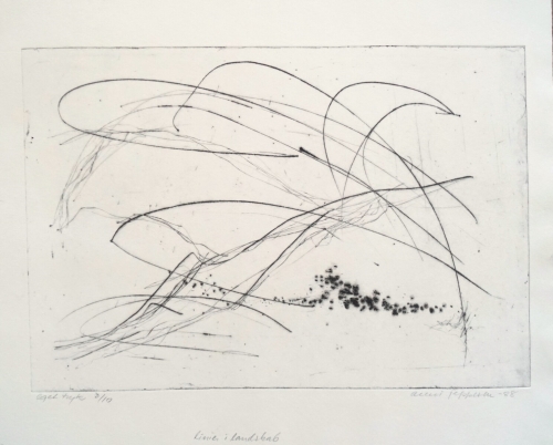 Anni Jeppesen - Linier i landskab. Koldnålsradering. Eget tryk 3/10 1988