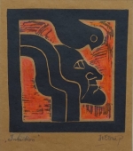 Henry Heerup, Linoleumssnit med oliekridt på brunt papir, 1943. Få eksemplarer