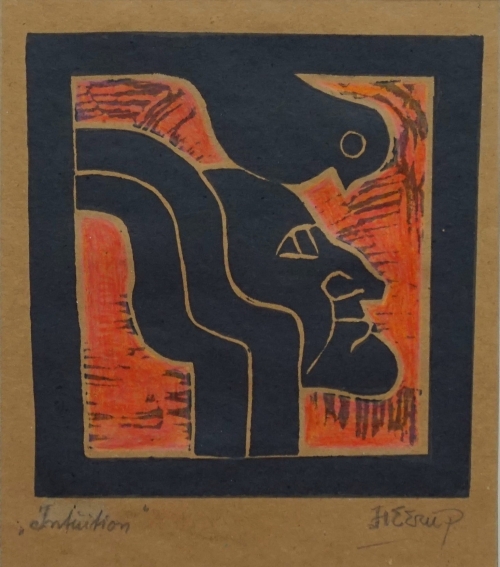 Henry Heerup - Linoleumssnit med oliekridt på brunt papir, 1943. Få eksemplarer